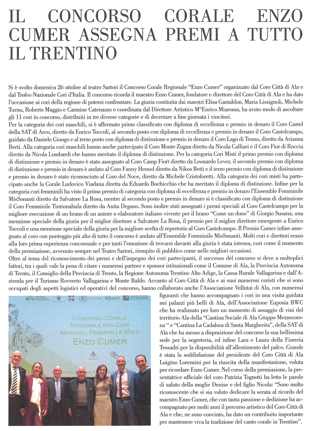 ▪ da Ala Informa di dicembre 2025 - Concorso Corale Regionale "Enzo Cumer"